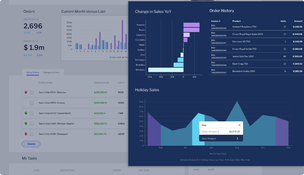 Access Assisted Insights from dashboards, report toolbars, or directly within the Report Builder by clicking Tell Me About My Data. The insights follow you wherever your analysis takes you.